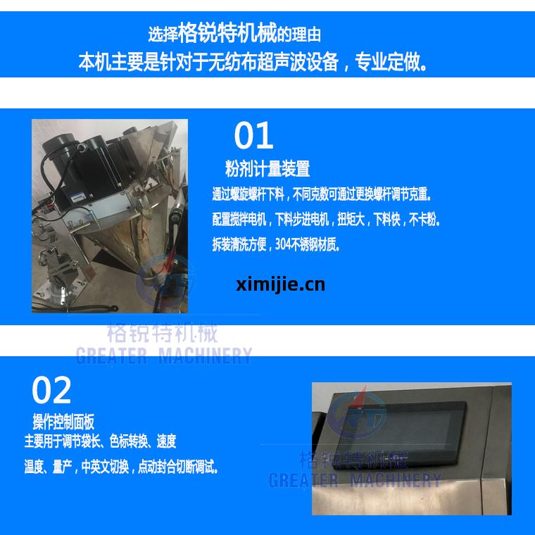 3、高(gao)效(xiao)性(xing)超聲(sheng)波焊(han)接(jie)制(zhi)袋,使封合(he)質量(liang)牢(lao)固(gu)美觀。