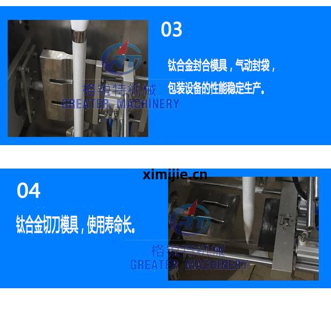 2、智(zhi)能光(guang)電(dian)控制(zhi)裝(zhuang)置(zhi),確(que)保(bao)包(bao)裝(zhuang)制(zhi)袋圖案完整(zheng),拉(la)袋采用(yong)驅(qu)動步(bu)進(jin)電(dian)機控(kong)制及(ji)色標定位(wei)。