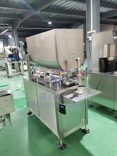 半(ban)自動臥式(shi)液體醬(jiang)料灌裝(zhuang)機(ji)屬於單(dan)頭液(ye)體灌裝(zhuang),屬於活(huo)塞式(shi)灌裝(zhuang)設(she)備。