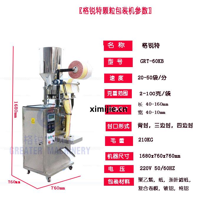顆(ke)粒(li)背(bei)封包(bao)裝(zhuang)機(ji)主(zhu)要適合於細小顆(ke)粒(li)狀(zhuang)產(chan)品(pin)自(zi)動(dong)包(bao)裝(zhuang)。